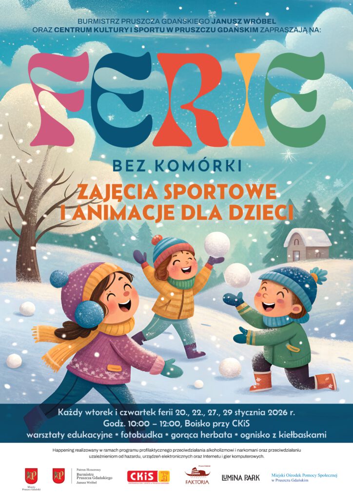 Zapraszamy dzieci spędzające ferie w Pruszczu Gdańskim! Tym razem zachęcamy do spędzania czasu bez komórki. Zaplanowane mamy wspaniałe atrakcje.